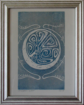 Woman in the Moon, handmade block print.